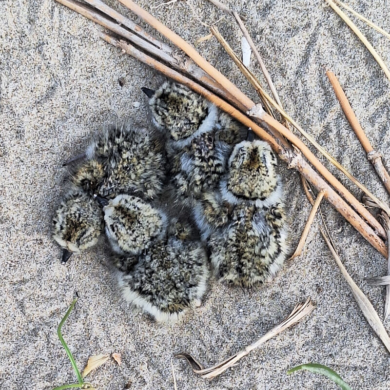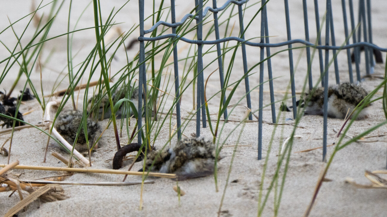De dag na nationale Bevrijdingsdag zijn de eerste Bontbekpleviertjes uit het nest gekropen. De alarmroep van de beide ouders kondigde de vier uiterst kleine vogeltjes aan van het eerste nest in Camperduin. De broedperiode werd aangevangen op 10 april en is vandaag overgegaan in volgende levensfase. De vier Bontbekplevieren moeten als zogenaamde “nestvlieders” zichzelf redden met afwisselend warm blijven onder de vleugels van de ouders en voedsel zoeken op het strand.