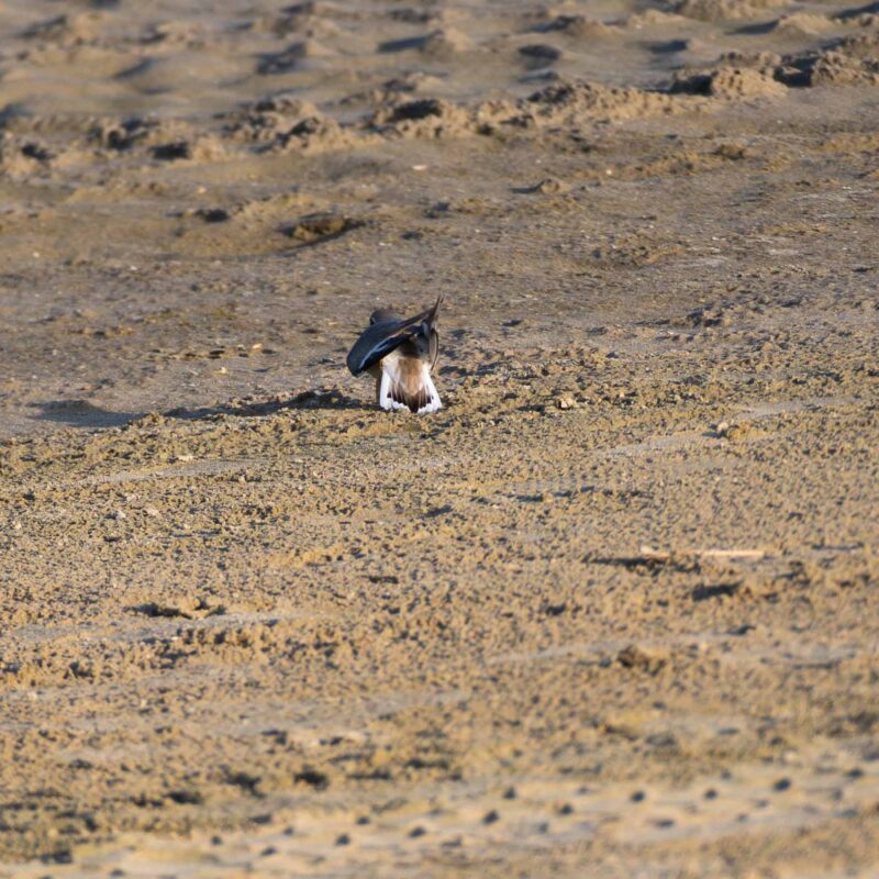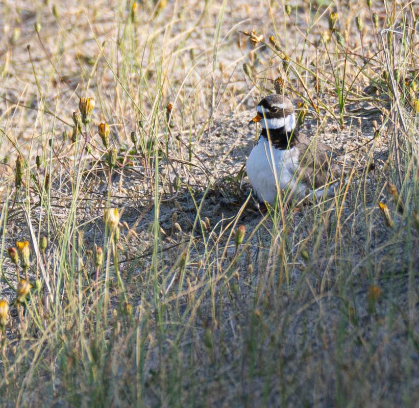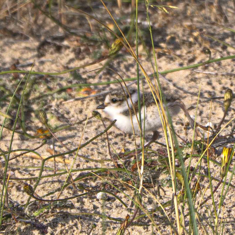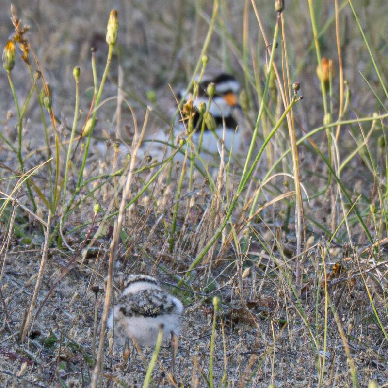 Zondagmorgen rond 07.00 uur rust in-en rond de Lagune te Camperduin, waar de Bontbekplevieren nu de regie hebben. De ouderzorg van beide Bontbekplevieren concentreert zich van het brede strand tot in de begroeide embryonale duinen. In die habitat is het relatief veilig voor de twee pullen van nest vier. De afleidingsmaneuvers met onder andere het zogenaamd gehandicapt wegrennen met lamme vleugels worden gebruikt om de vroege vogelaar af te leiden. De fotocamera is echter meedogenloos en registreert het jonge grut in de nabijheid van de ouders.