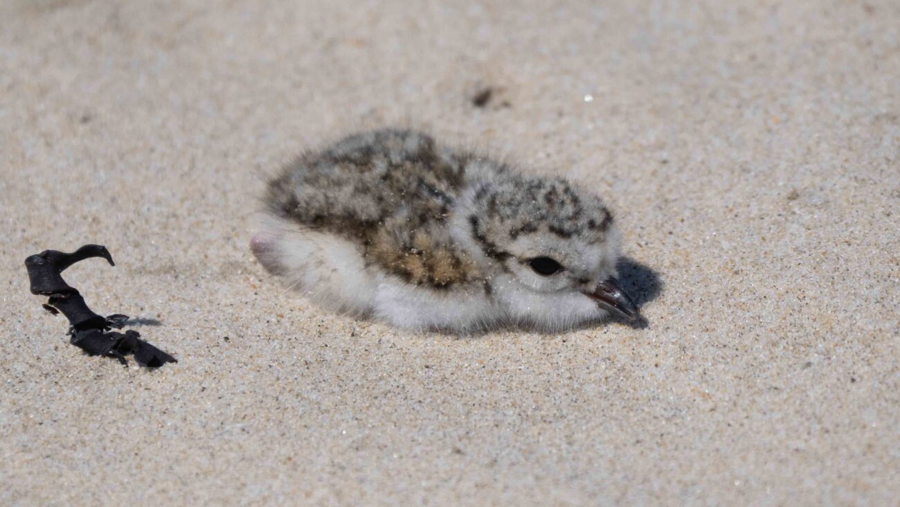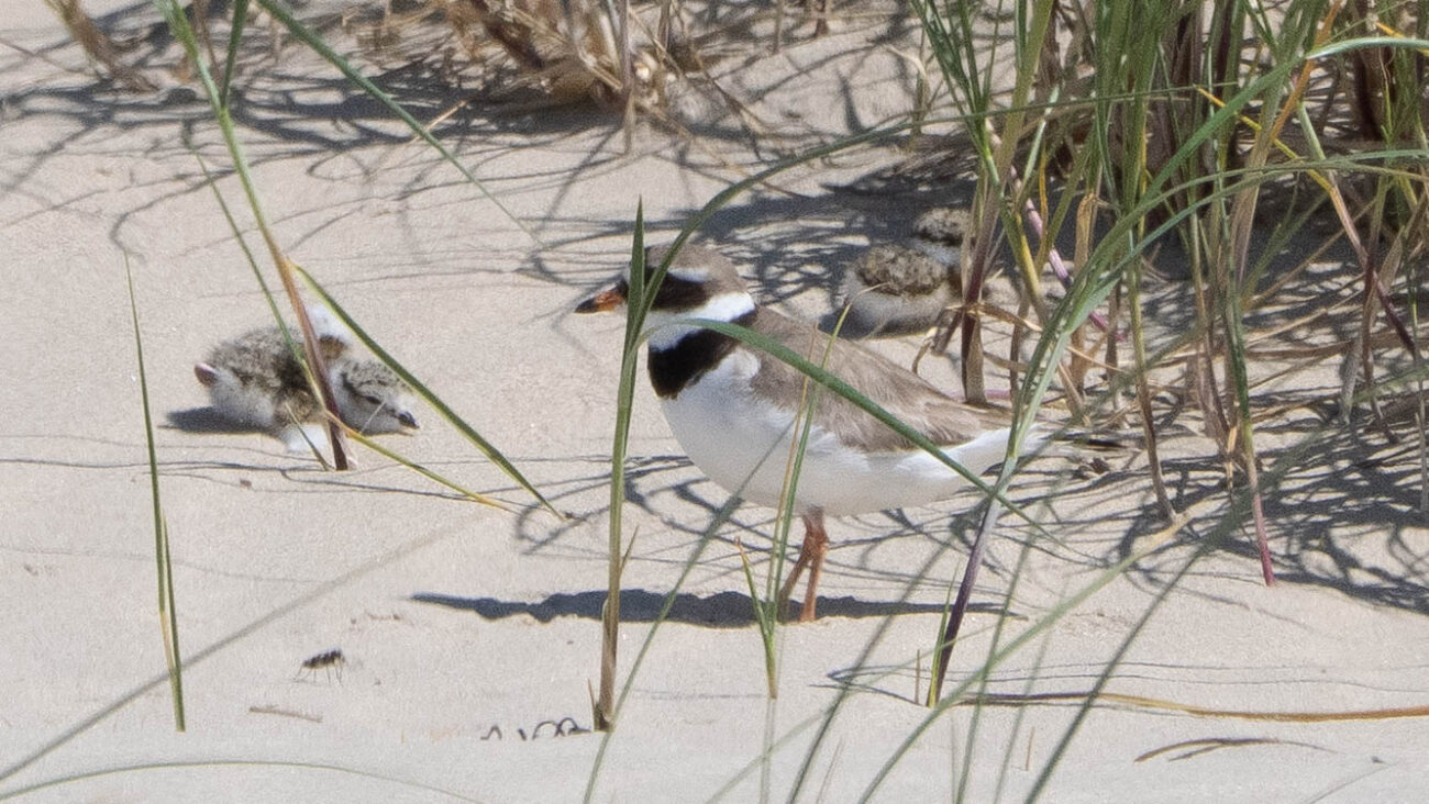 Vandaag het tweede nest van de Bontbekplevieren bezocht waarbij bleek dat de drie eieren waren inmiddels ook uitgekomen. De pullen lagen verdekt in het vloedmerk ten noorden van de nestkooi. De ouders uiteraard waakzaam en in de direct nabijheid.