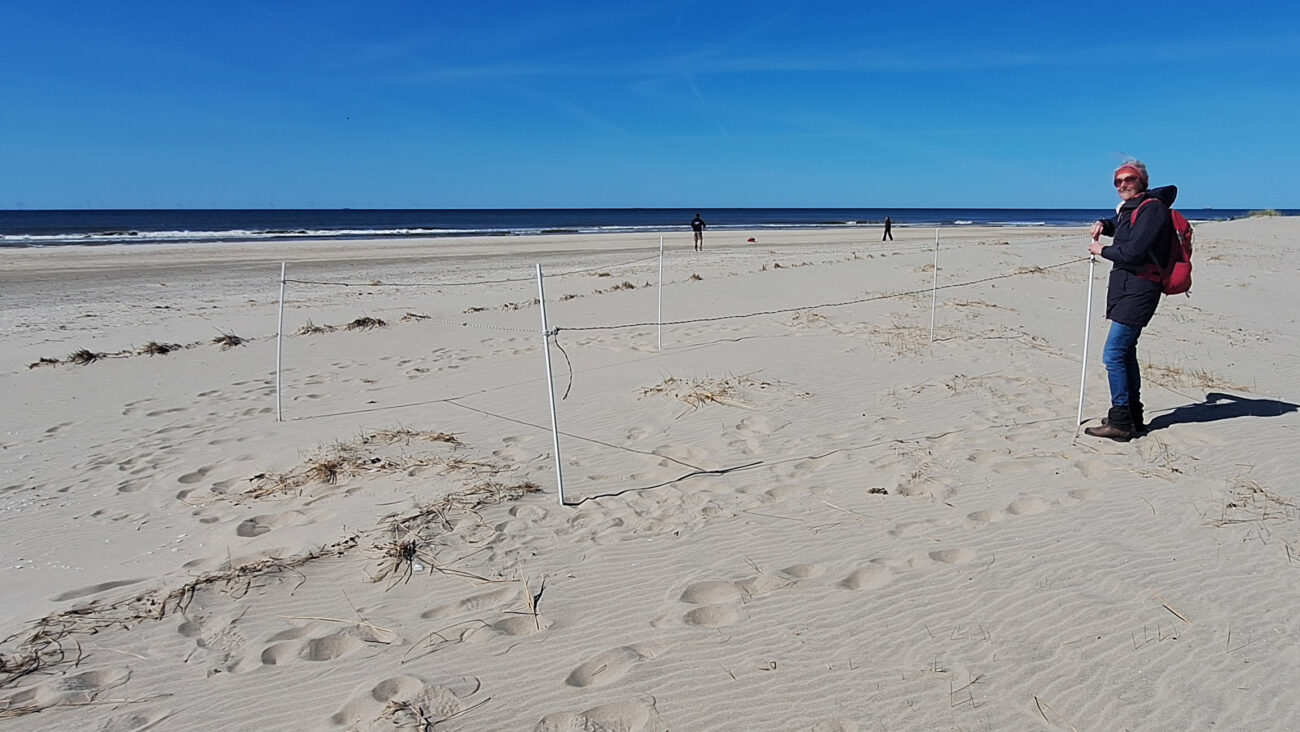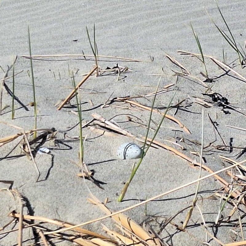 Dit kwam ter ore van de ook in de nabijheid aanwezige ‘Groene Strand’ beachcleaner/vogelwachter Jolanda. Deze reageerde adequaat en markeerde het eerste Bontbekplevier ‘ ei ‘ van 2025 in Camperduin.