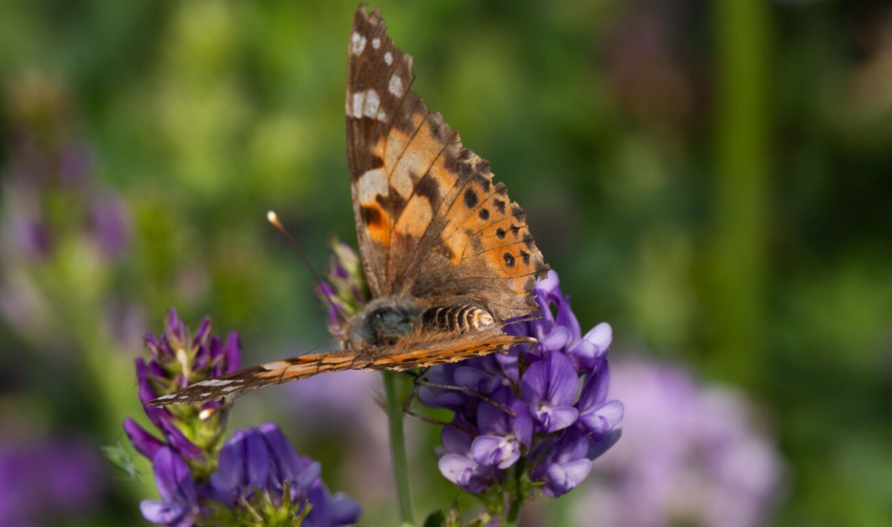 De derde vogeltelling voor de Agrarische Natuurvereniging bij uitstekend weer, geen wind en veel zon vandaag uitgevoerd. Plaats van handeling de Oostpolder in Anna Paulowna. De gewassen staan er op dit moment goed bij ondanks de droogte van dit voorjaar. De luzerne is recent gemaaid van de 2 jarige vogelakker, terwijl de kruidenrijke stroken inmiddels tot volle wasdom zijn gekomen. Een kleurenpracht die veel fraaie insecten aantrekt. Op dit moment nog weinig akkervogels. Reden om de focus van de camera dit keer op de kleine gevleugelde schepselen te leggen.