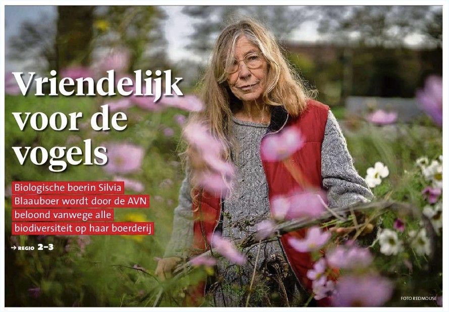 In de lokale media, de Schager Courant krijgt Silvia Blauwboer een podium voor haar verdienste als biologische boerin. In het interview getuigd ze een enorme drive de wereld een beetje beter te maken. Nadat ze op 28 oktober bij haar collegae tijdens de jaarvergadering van de Agrarische Natuurvereniging Hollands Noorden in het zonnetje werd gezet, nu dus ook voor de lezers van het regionale dagblad.